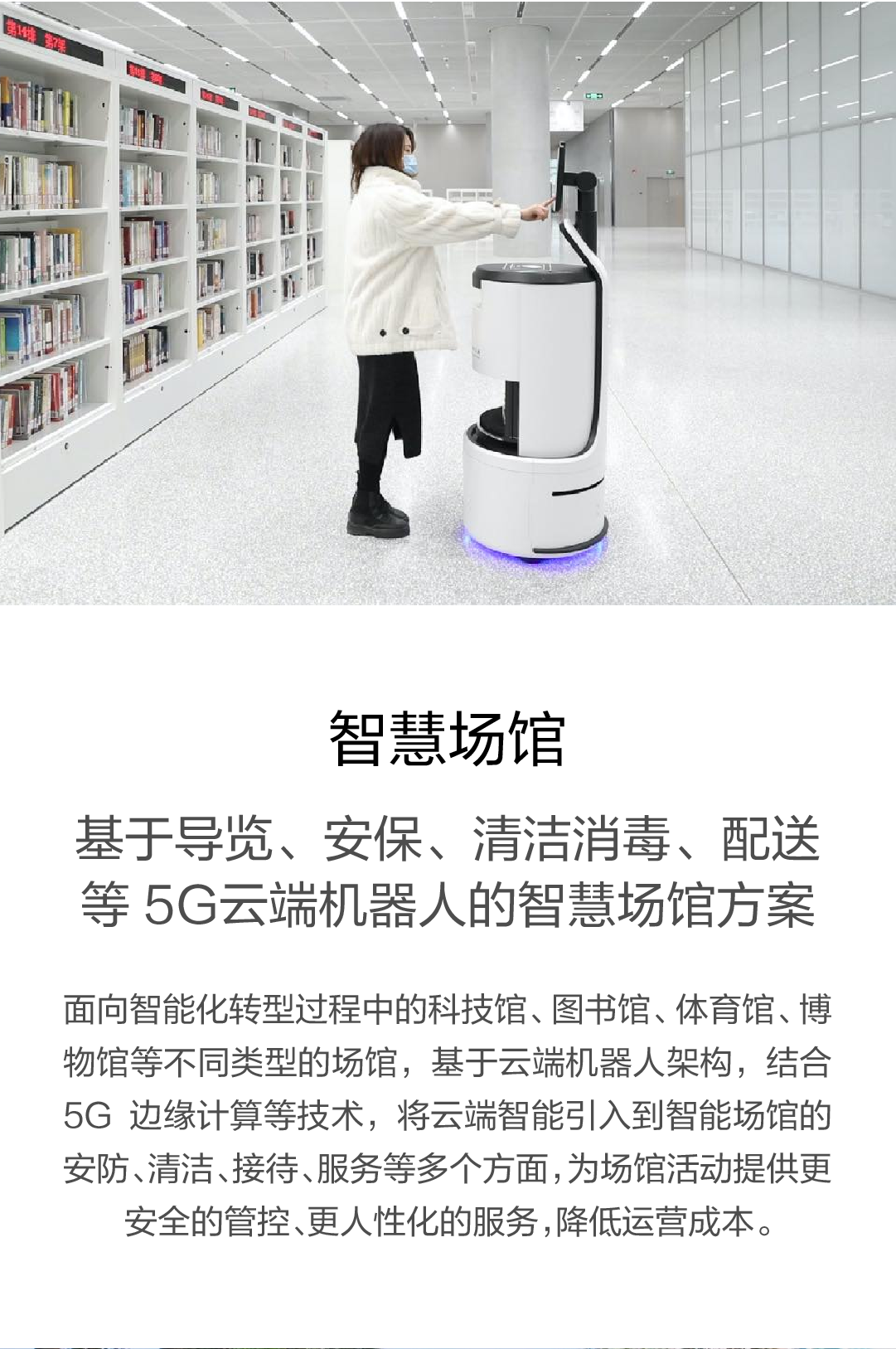 基于导览、安保、清洁消毒、配送等 5G云端机器人的智慧场馆方案